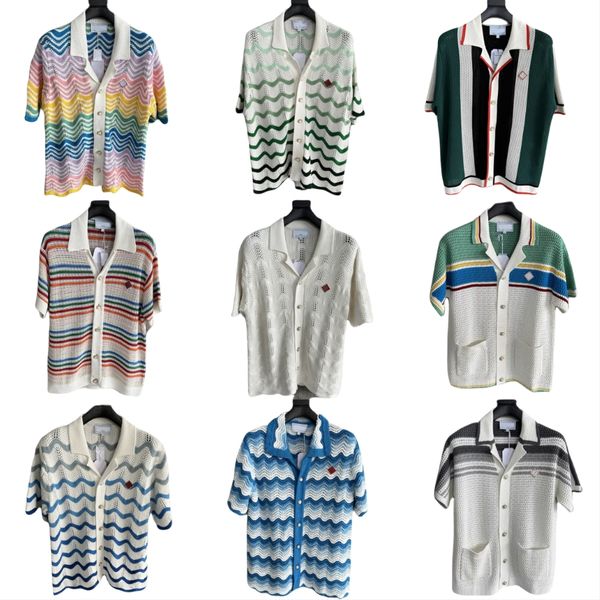 Sweaters Casabalance New Men Designer Knitted Coat High Quality Breathable Summer Lapel Button Wave Crochet Casual Versatile Wool Knit Cardigan Shirt Outwear Tops, Indigo