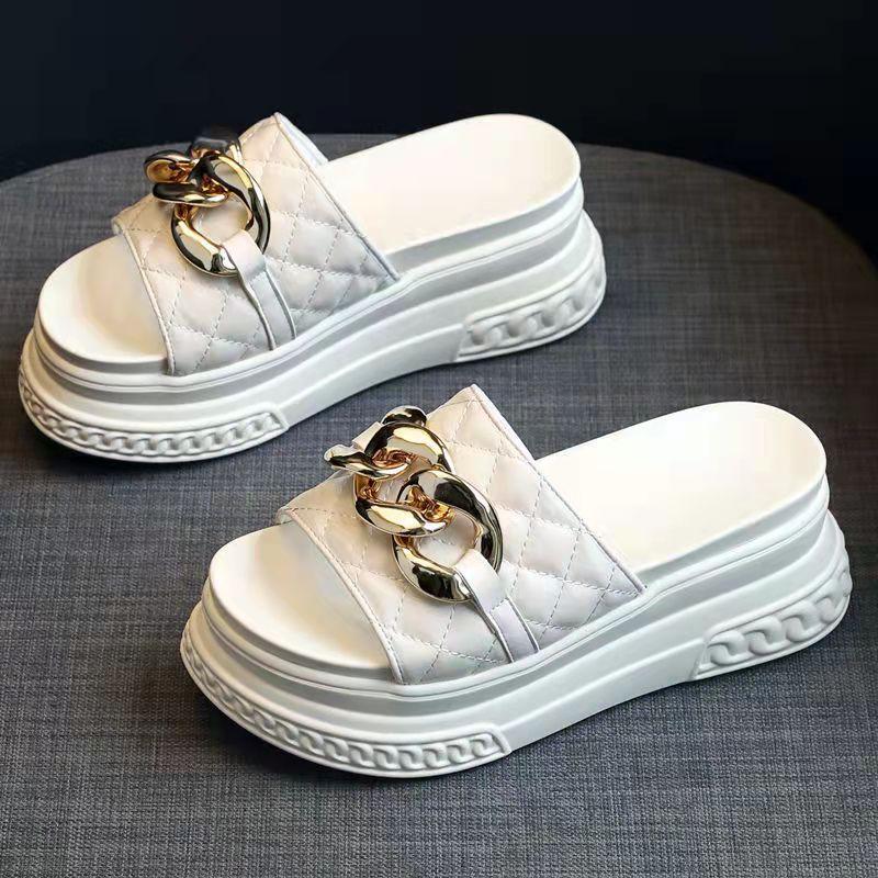 SyfIyno Летние Новые Сандалии Летний Ананасовый Торт Толстая Подошва Шлепанцы Модная Цепочка Трендовые Женские Шлепанцы 39 белый