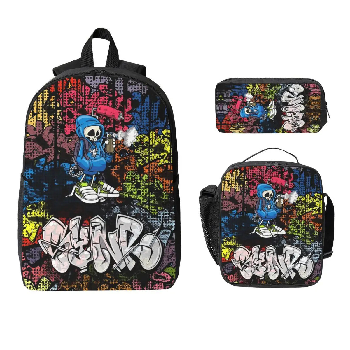 Synr 70-х годов Ретро рюкзак с принтом комиксов и граффити для мальчиков и девочек, школьная сумка, сумки на плечо, 3 шт., изолированная сумка для обеда, пенал