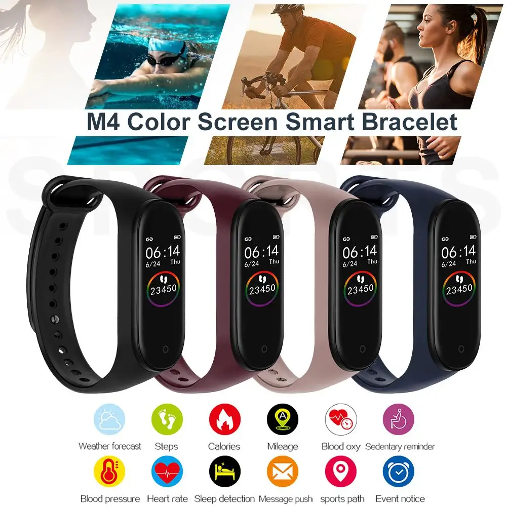 Smart Bracelet Pedometer Waterproof Running Sports Tracker Step M4 Heart Rate Monitor Counter Walking Fitness Wrist Band Watch