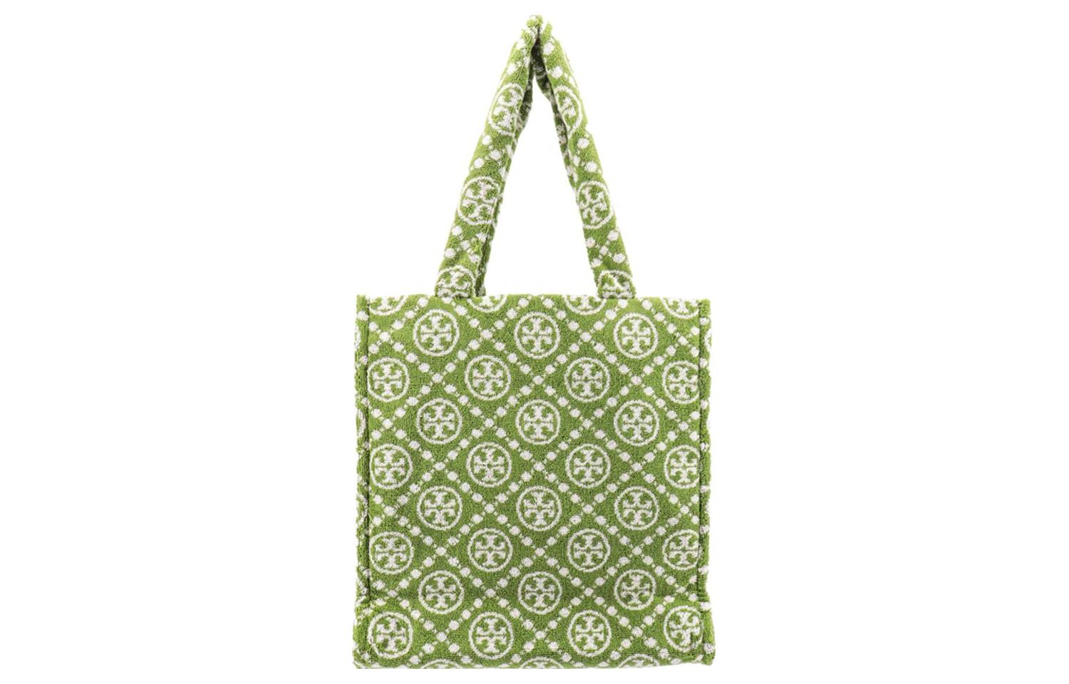 T Monogram Хлопковая Сумка-шоппер с Жаккардом, Пляжная Сумка, Дамская Сумка, Сумка Через Плечо Женская Зеленая TORY BURCH