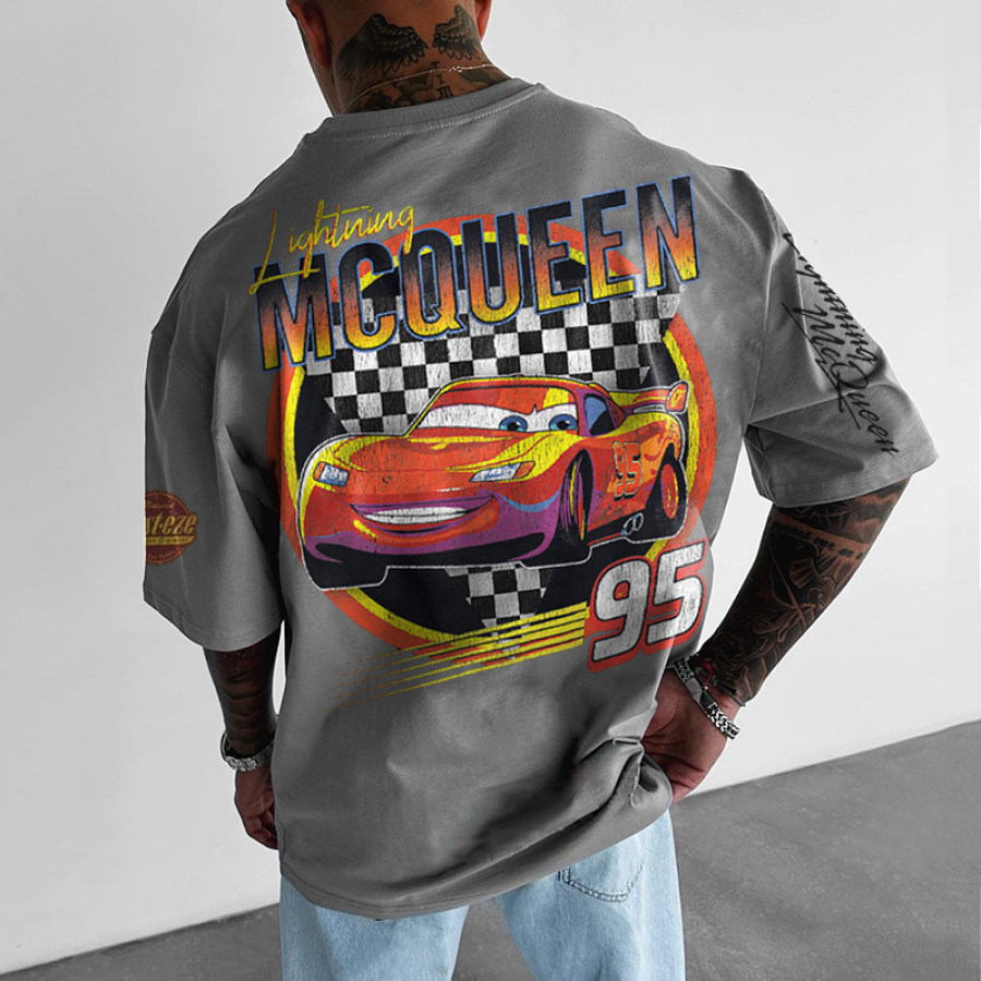 T-Shirt Mit Retro-Racing-Cartoon-Aufdruck