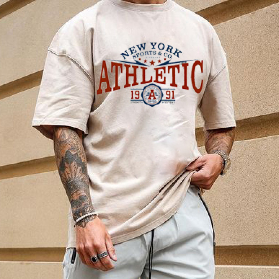 T-shirt à Imprimé Lettre Abricot Décontracté Américain Rétro Tendance De La Rue Pour Hommes