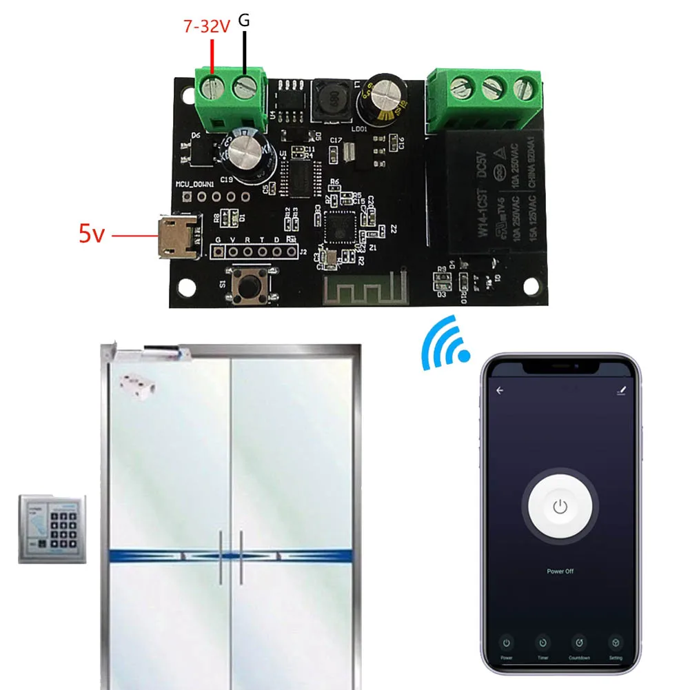 T23C Tuya Wifi Switch Single Way Switch Relay Module Point Automatic Locking Mobile Phone APP Remote Control Remote Voice