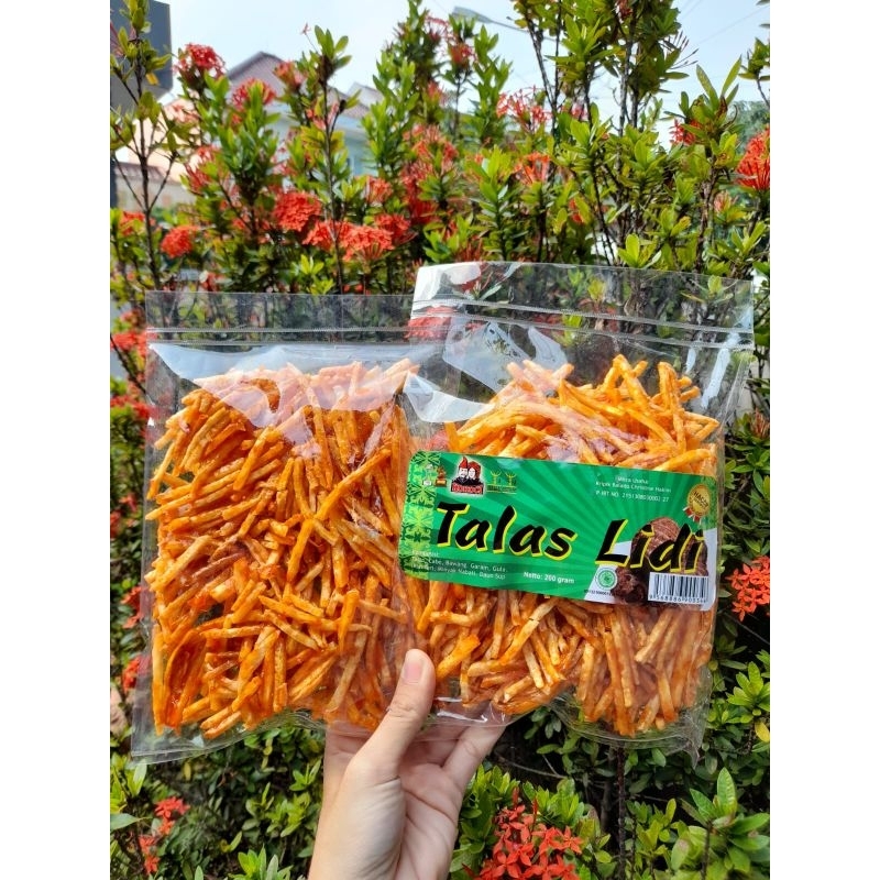 Keripik talas dipotong berbentuk lidi dengan balutan bumbu balado, pedas manis, texture sedikit lengket Syuper NIKMAAAAT.
