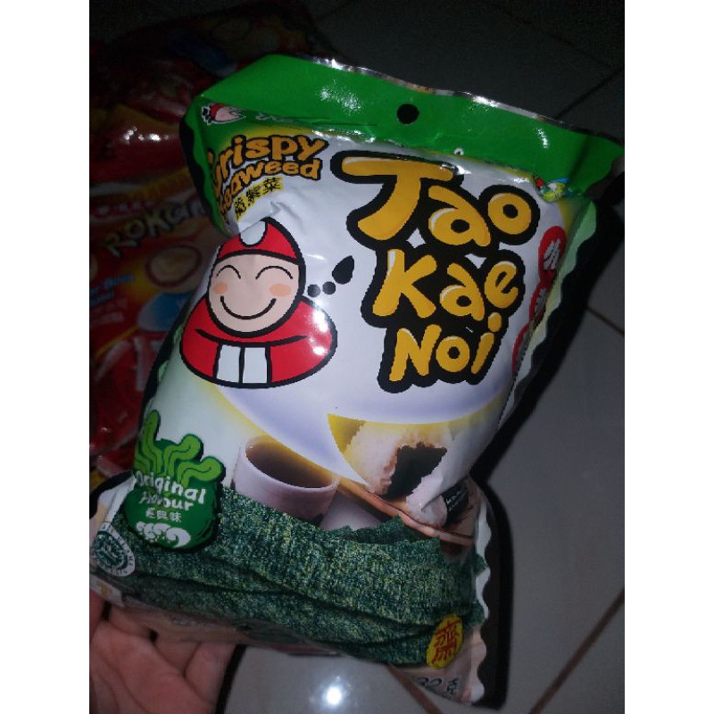 tao kea noi atau sering disebut rumput laut produk thailand ini wajib di jadikan cemilan teman nonton , biat yg suka masak mungkin bisa dipadukan dengan resep sushi dll ya .
