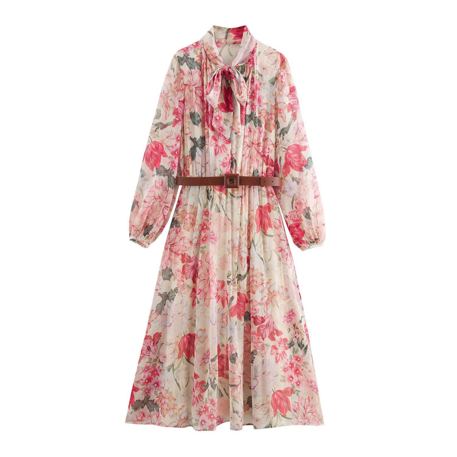 TAOP&ZA Женское миди-платье с цветочным принтом и поясом - Весенне-летний элегантный стиль Large