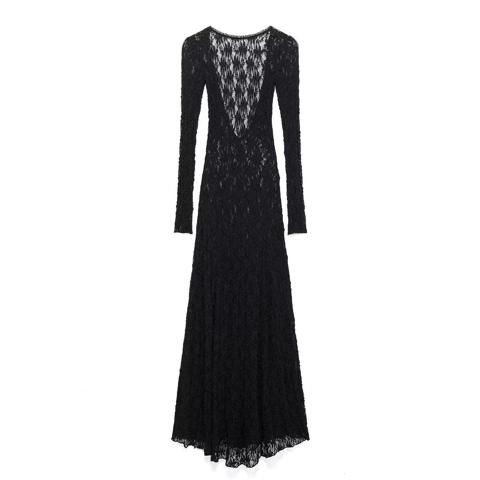 TAOP&ZA Женское черное кружевное длинное платье с глубоким V-образным вырезом на весну/лето Small