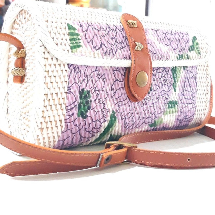 TAS ROTAN AMPLOP DECO MOTIF BUNGA UNGU BEST - BY AL SHOP