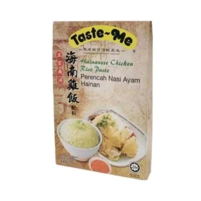Taste-Me Nasi Hainam Paste adalah bumbu nasi hainam, bumbu praktis ini dapat anda gunakan dengan hanya mencampurkan bumbu saat hendak menanak nasi. Cita rasa nasi Hainam hampir mirip dengan nasi uduk yaitu gurih dan nikmat.