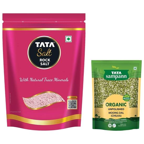 TATA Sampann Органический Мунг Чилка Дал, 500 г и каменная соль Тата | Премиум Сендха Намак | с природными микроэлементами | 1 кг Мешок