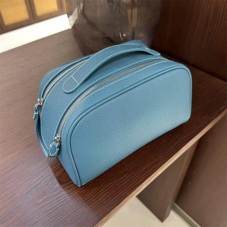 TC высококачественная дорожная портативная косметичка большой вместимости из первого слоя коровьей кожи, мягкая кожаная туалетная сумка, легкая роскошная сумка для хранения 24x14.5x15cm джинсовый синий