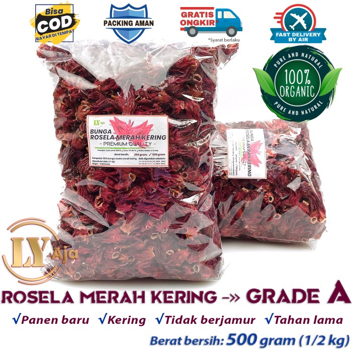 TEH BUNGA ROSELA MERAH KERING 500 GRAM ROSELLA ROSELLE LY AJA 500 GR