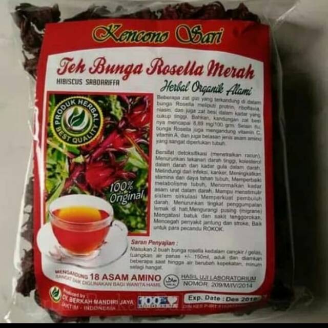 mg/100 grm. Selain itu, bunga Rosella juga mengandung vitamin C, vitamin A, dan juga belasan jenis asam amino yang sangat diperlukan tubuh.