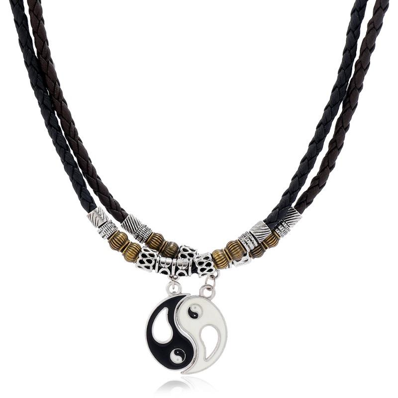 TEMU персонализированная модная восковая линия бусины деревянные бусины кулон ожерелье для пары Инь-Ян новые разноцветный