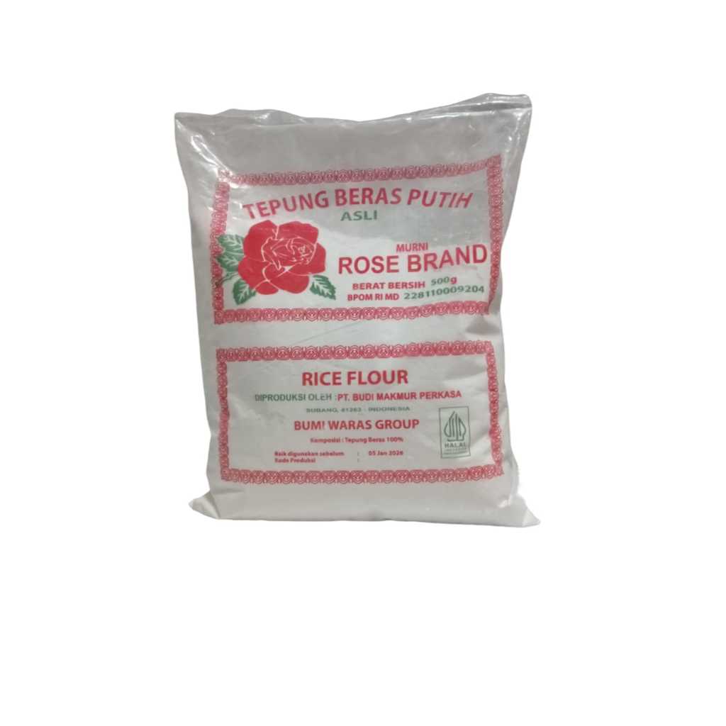 . Tepung Beras Putih Rose Brand 500 gr Merupakan tepung yang dibuat dari beras terbaik yang diproses secara higienis dan sangat cocok untuk bahan baku membuat semua jenis kue kue tradisional atau hidangan lainnya. Tepung beras tidak sama dengan pati beras yang dibuat dengan merendam beras dalam larutan alkali.