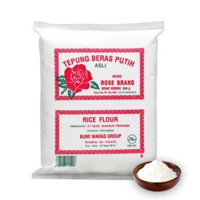 Tepung Beras Putih Rose Brand 500gr adalah tepung yang dibuat dari beras terbaik diproses secara higenis, sangat cocok untuk baku membuat semua jenis kue kue tradisional atau hidangan lainnya. Tepung beras tidak sama dengan pati beras yang dibuat dengan merendam beras dalam larutan alkali. Tepung beras dapat dijadikan pengganti dari tepung gandum bagi penderita intoleransi gluten karena tepung beras tidak mengandung gluten.