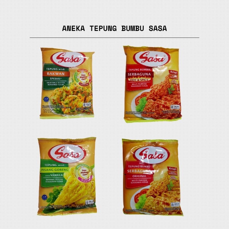 Sasa Tepung Bumbu Serbaguna terbuat dari kombinasi rempah-rempah pilihan yang menghasilkan gorengan yang kaya rasa, krispi, dan khas aroma bumbunya.