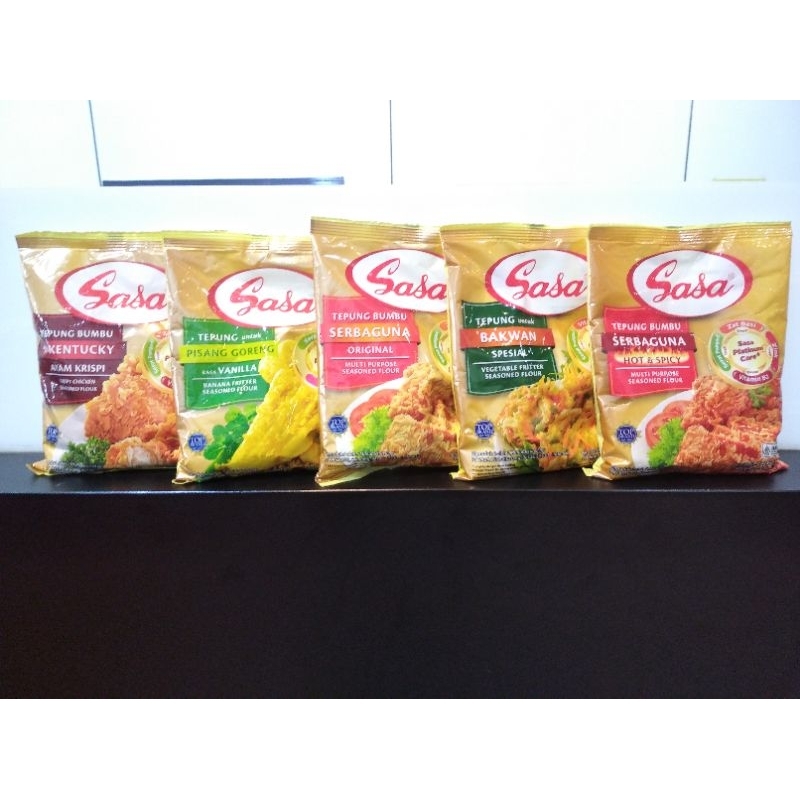 Sasa tepung bumbu kini dengan Sasa platinum (**) care+(***) tinggi zink, zat besi, serat pangan, vitamin B2 & B9. Sasa tepung bumbu terbuat dari kombinasi rempah-rempah pilihan yang menghasilkan gorengan yang kaya rasa, krispi, dan khas aroma bumbunya.