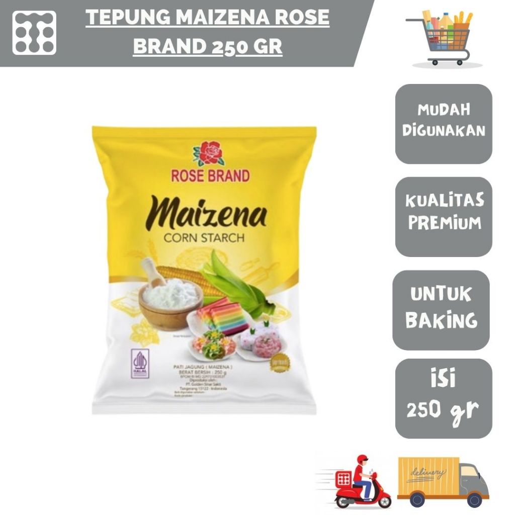Rose brand maizena merupakan tepung yang terbuat dari biji jagung tepung pati jagung Tepung pati jagung memiliki berbagai kandungan seperti kandungan gizi, protein, karbohidrat, kalsium, dan zat besi. Oleh karena itu, tepung maizena dapat digunakan untuk olahan makanan.