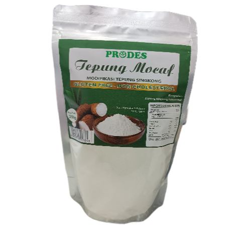 Tepung Mocaf PRODES merupakan tepung singkong termodifikasi (MOCAF). Tepung ini terbuat dari singkong yang direndam menggunakan enzim organik atau melalui proses fermentasi dengan enzim tanpa bahan tambahan. Hasilnya adalah tepung yang bebas gluten.