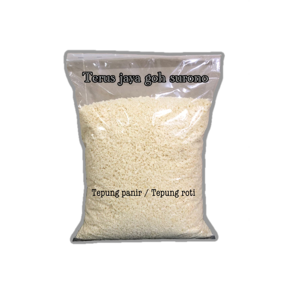 TEPUNG PANIR/TEPUNG ROTI ini gunanya untuk memberikan makanan memiliki lapisan luar yang renyah. biasa digunakan untuk membuat kroket, risol, katsu dan lainnya. Tepung ini berwarna putih berat 1kg