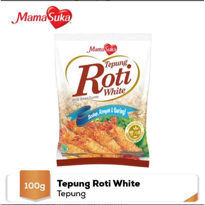 Lengkapi bahan-bahan untuk memasak di dapur Anda dengan Mama Suka Tepung Roti 100g. Tepung Roti Mama Suka ini terbuat dari bahan tepung terigu berkualitas sehingga memiliki aroma yang harum, renyah, garing, dan memiliki rasa yang sedap. Tepung roti dengan butiran yang halus dan lembut ini sangat cocok digunakan sebagai bahan pelapis saat membuat berbagai menu lauk seperti udang goreng tepung, daging sapi, ayam, ikan, dll. Gunakan Mama Suka Tepung Roti 100g ini untuk mengkreasikan menu-menu masakan favorit Anda agar semakin renyah dan lezat.