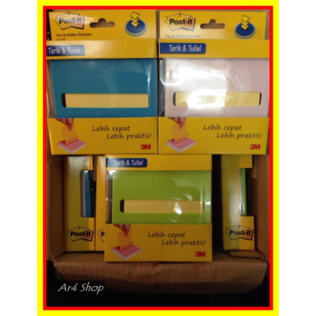 Dengan tiga warna (putih, pink, dan abu-abu). Dapat direfill dengan Post-it Pop-Up Notes 3x3 .