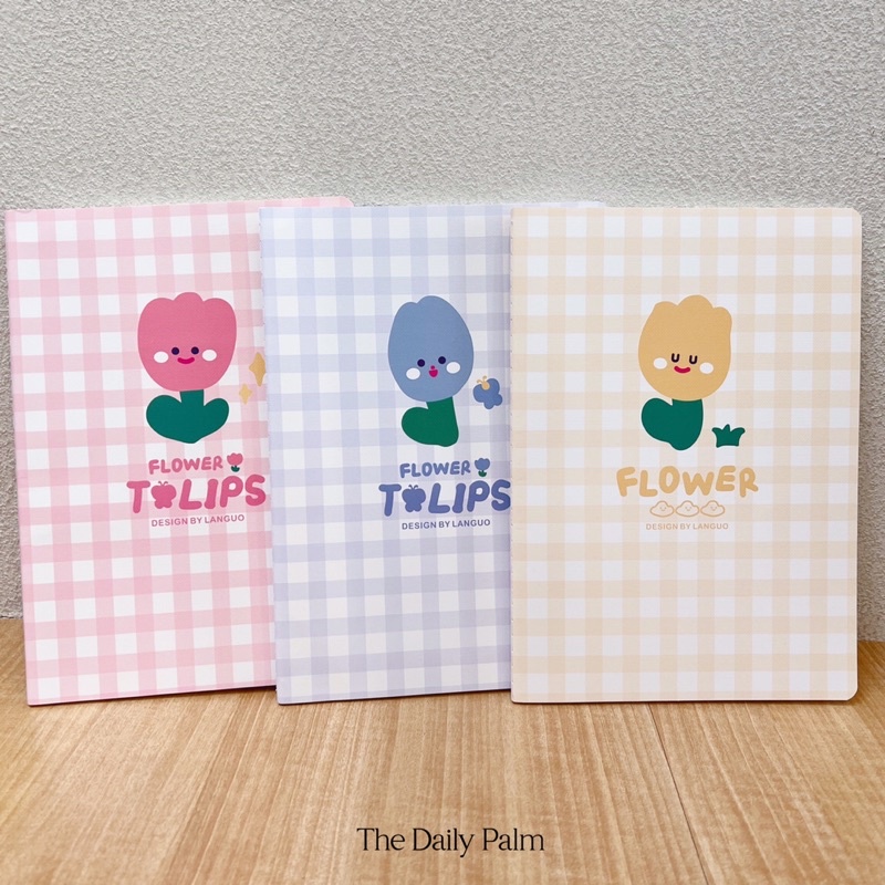 Buku catatan dengan sampul yang cantik dan berkualitas tinggi. Kertas putih gading B5 mulus dan cukup lapang untuk semua tulisanmu. Sampul karton bertekstur dihiasi ilustrasi bunga tulip berwarna pastel. Jilid jahitan benang membedakannya dari buku tulis lain dan membuat isi kertasnya tidak mudah terlepas.