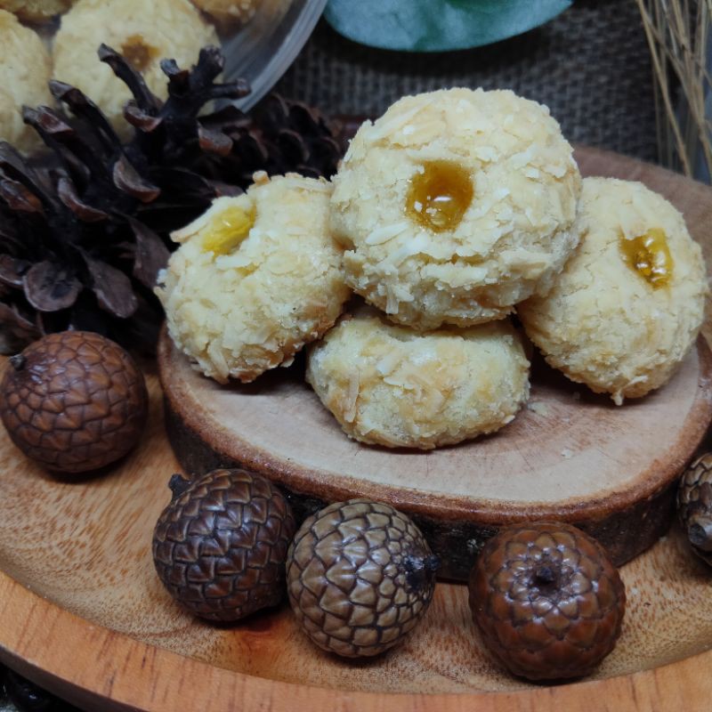 Kue Kering Thumbprint Keju dengan topping nanas diatasnya