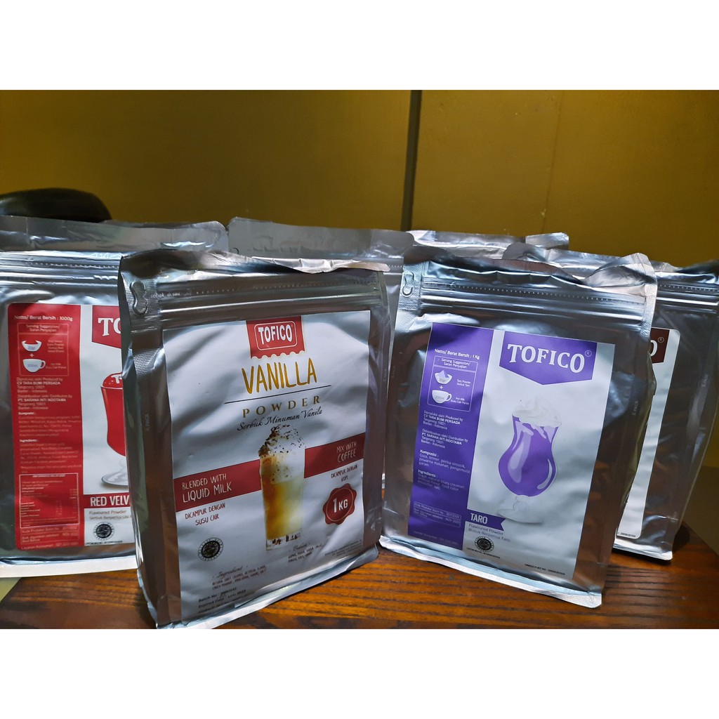 Tofico Powder/Bubuk Tofico adalah bubuk dengan berbagai varian rasa yang sering digunakan untuk campuran minuman seperti kopi, susu, dan minuman kekinian lainnya.