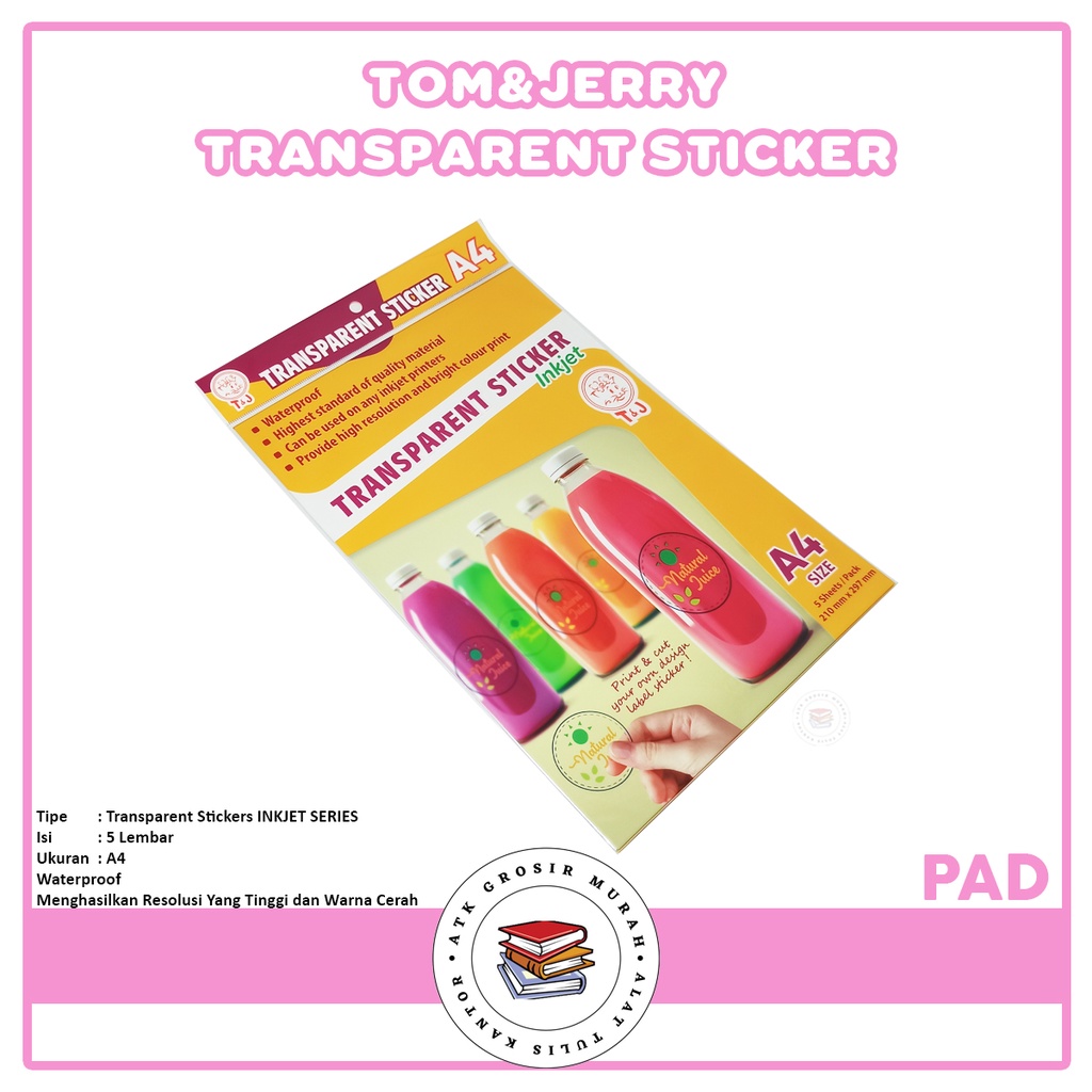 TOM & JERRY - Label Transparant Sticker Inkjet Series UK.A4 - Pad