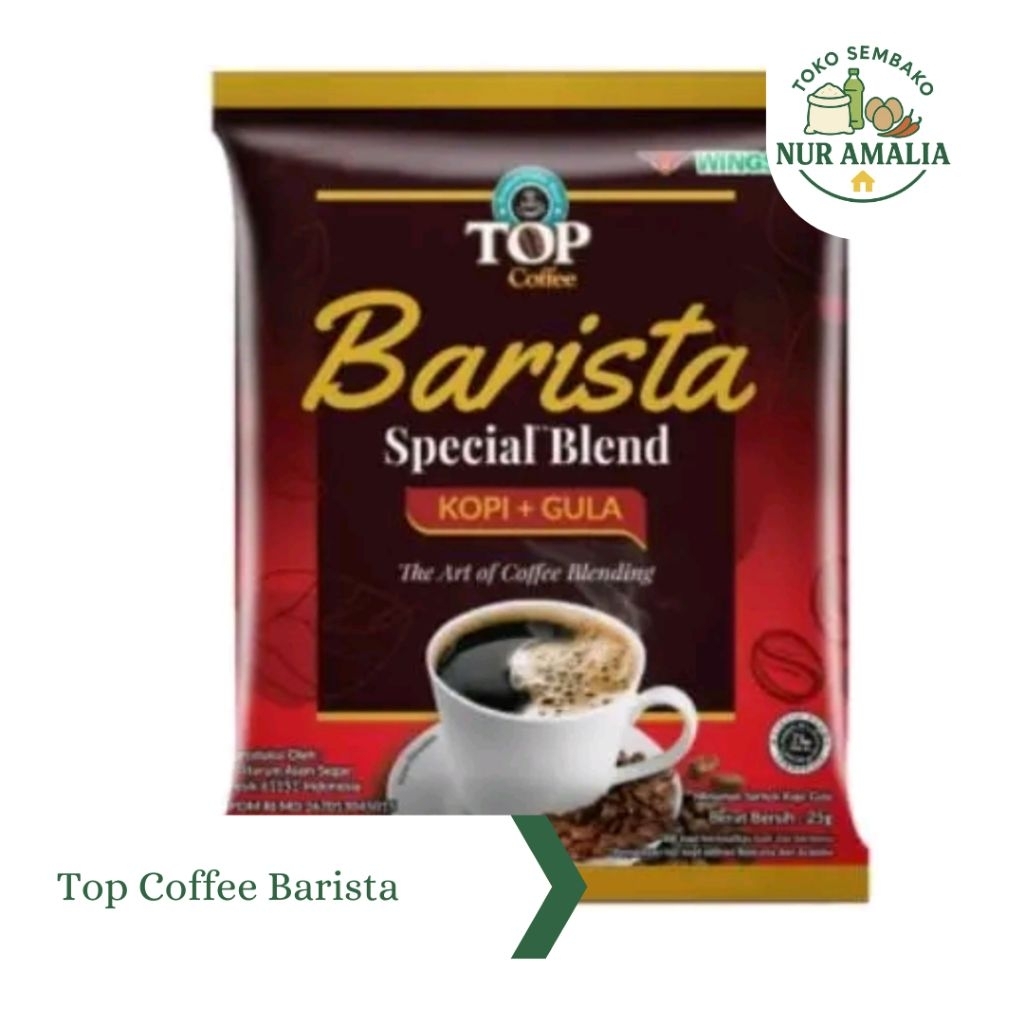 Top Kopi Barista adalah produk kopi instan dari TOP Coffee yang dibuat dari campuran biji kopi Robusta dan Arabika, serta gula. Kopi ini diklaim memiliki rasa yang nikmat dan kualitas premium seperti kopi barista. Top Kopi Barista tersedia dalam berbagai kemasan, termasuk sachet dan renceng.