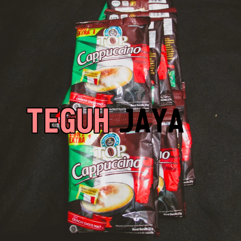 Top Cappuccino adalah produk Top Coffee yang menyajikan minuman serbuk kopi instan rasa cappuccino dengan taburan Crunchy Choco Malt.