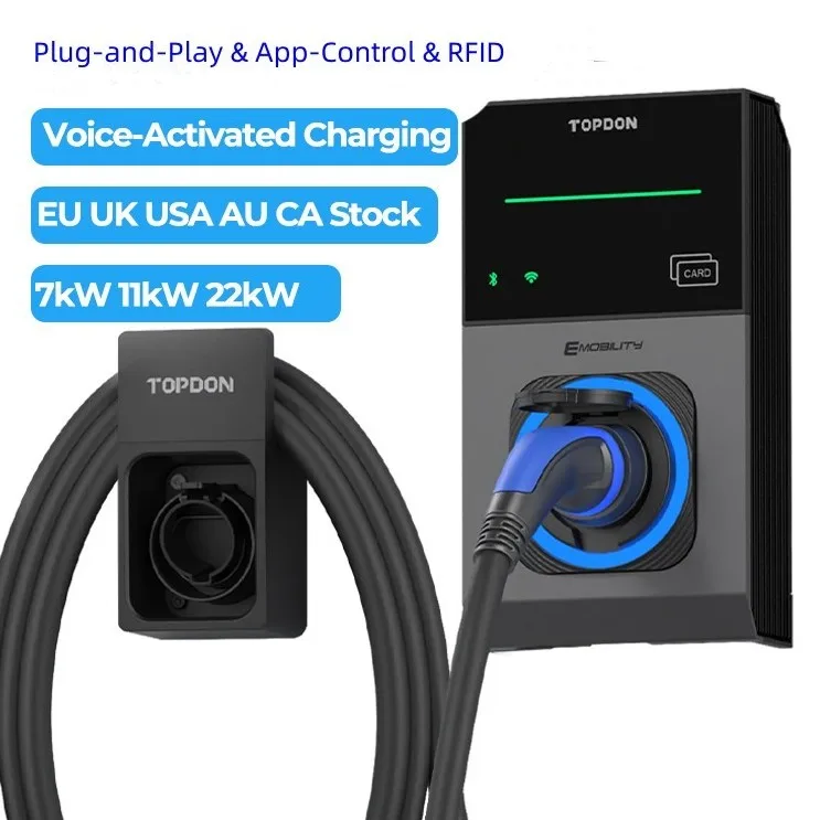 TOPDON EU UK Stock PulseQ AC Pro Ocpp 22 кВт 7 кВт 11 кВт Одиночная 3-фазная интеллектуальная зарядная станция Электрический автомобиль Тип 2 Зарядная станция для электромобилей