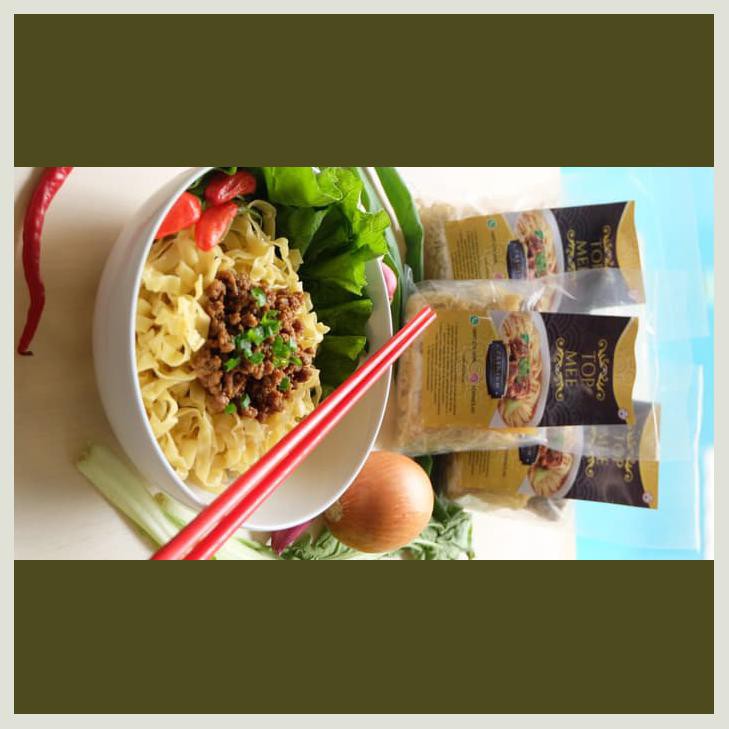 Mie mentah berkualitas tinggi, dikemas lengkap dengan bumbu, daging, dan sambal. Bakmi praktis tinggal rebus mie nya aja.