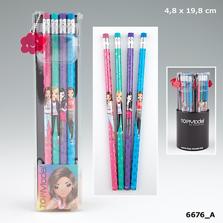 4 HB pencils in a set, packed into transparent bag with pink pendant. Print on pencils with metallic foil effect. Print colours: pink, turquoise, purple and blue.