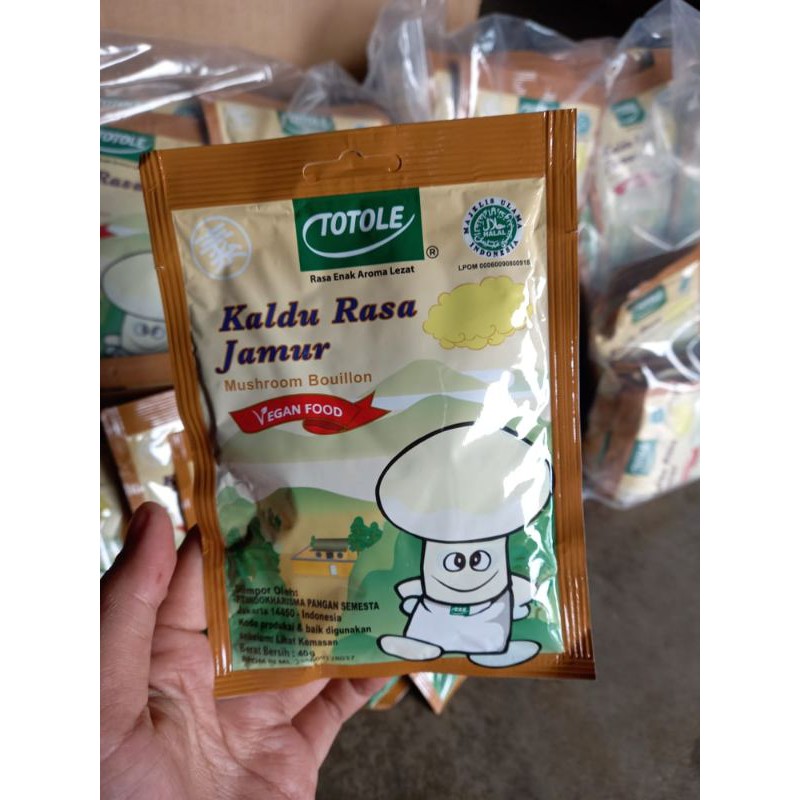 Kaldu Totole adalah Kaldu Jamur yang terbuat dari bahan-bahan alami yang dapat membuat masakan terasa gurih dan tidak mengandung MSG. Adapun komposisi Kaldu Jamur Totole terdiri dari : Jamur Kering, Garam, Beras dan Gula.