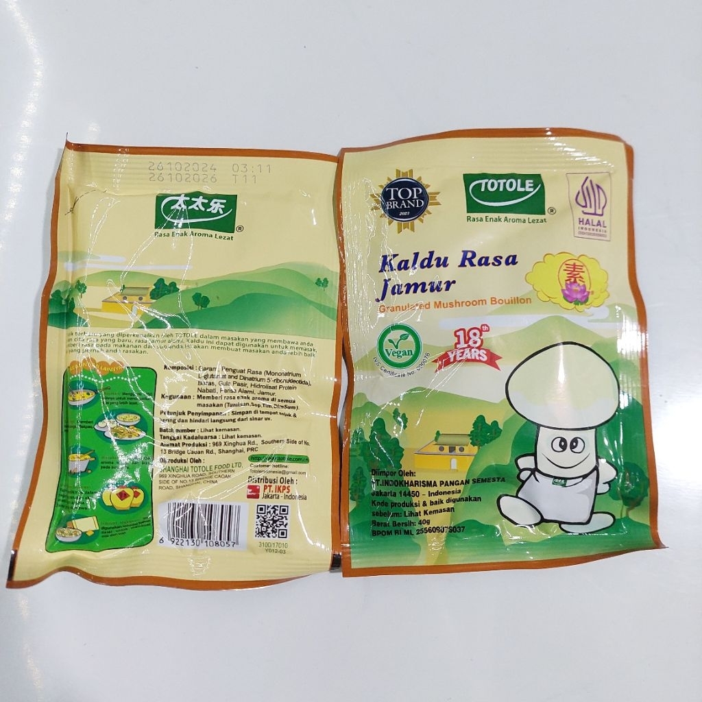 kaldu rasa jamur merk totole, cocok untuk masakan sup dll.
