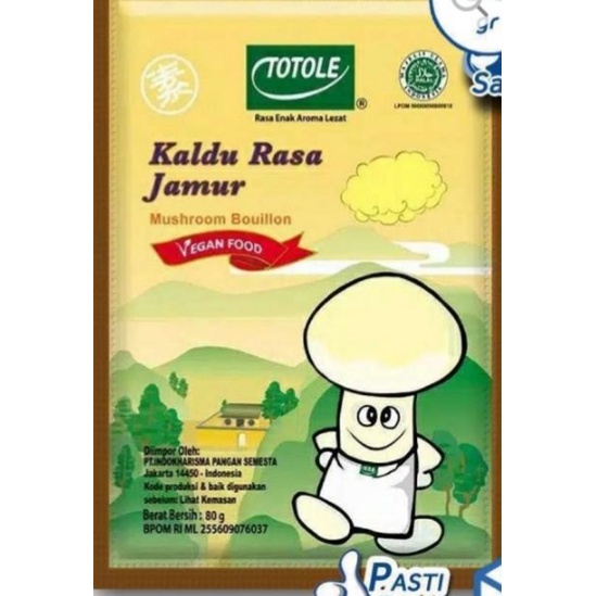 TOTOLE kaldu jamur kemasan 80gr.cocok digunakan untuk vegetarian sebagai penambah rasa masakan sehingga lebih enak dan sehat