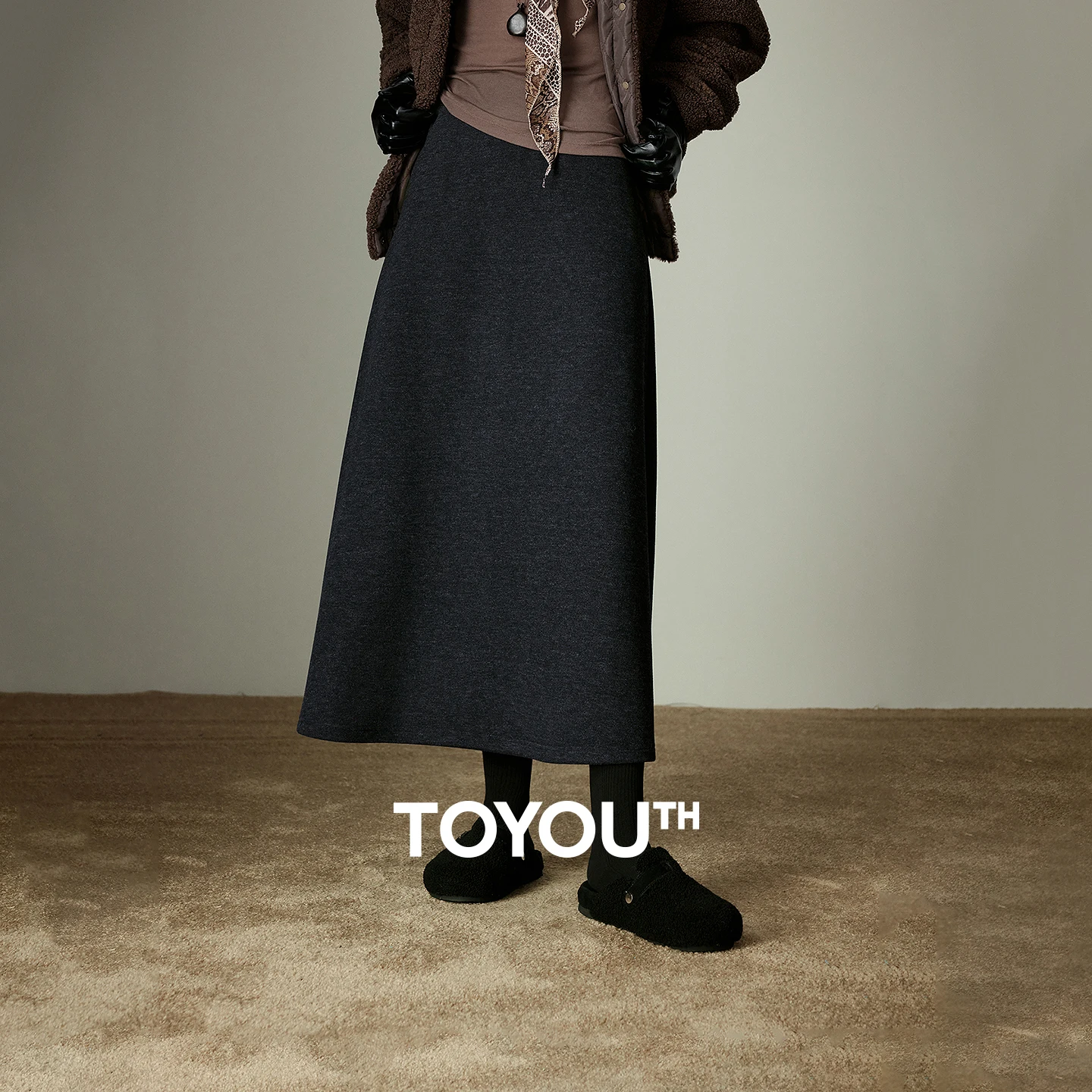 TOYOUTH женские юбки-миди, новинка зимы 2021, юбка-зонтик с эластичной резинкой на талии, ацетатная шерсть, простое универсальное маленькое черное платье