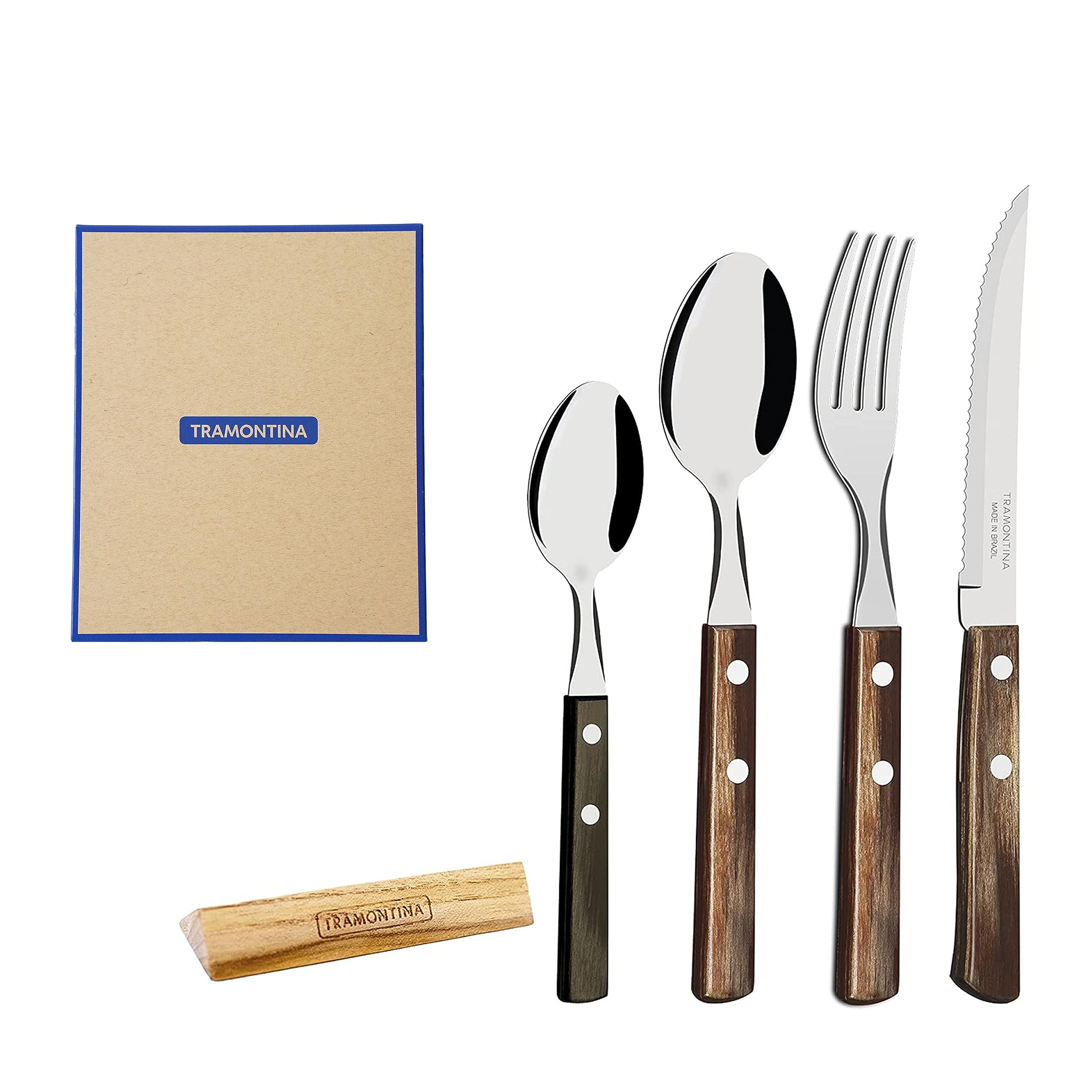 TRAMONTINA Поливуд Высокопрочный набор столовых приборов с ручками из натурального дерева из 4 предметов подставка для приборов Можно мыть в посудомоечной машине Ножи с термообработкой 3 степени Темный