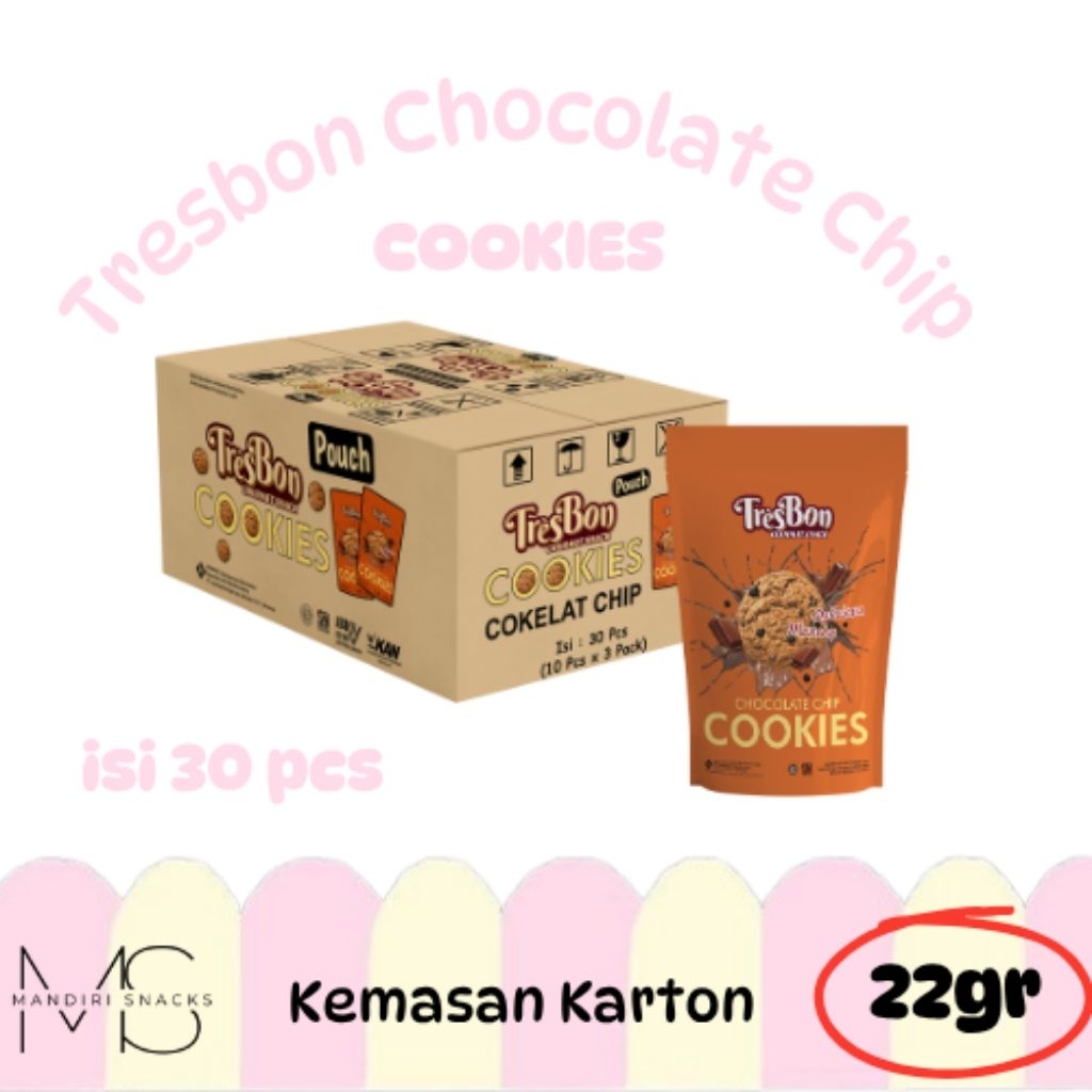TRESBON CHOCOLATE CHIP COOKIES RASA COKLAT ISI 30 POUCH KEMASAN KARTON