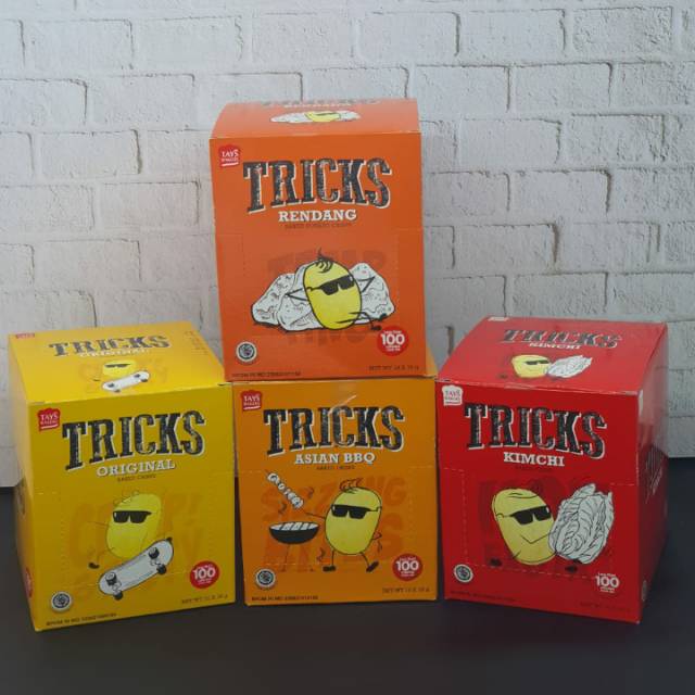 Snack kentang dengan varian rasa Asia yang khas membuat Tricks menjadi favorit semua kalangan. Dengan rasa Original, Asian BBQ, Kimchi serta Rendang pastinya bakal bikin kamu ketagihan. Dibuat dari kentang asli dan di bumbui seasoning khas asia snack ini enak dan mudah di bawa kemana-mana cocok banget utk sharing dan ukurannya yang pas dikantong cocok sekali untuk jadi #temanperjalananmu