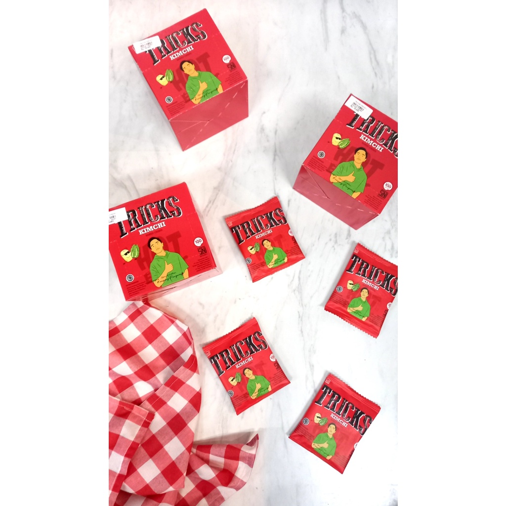 Tricks adalah sebuah produk keripik kentang yang enak dan juga halal. kami tersedia dalam varian kimchi yang pastinya best seller dan cocok untuk menemani waktu bersantai