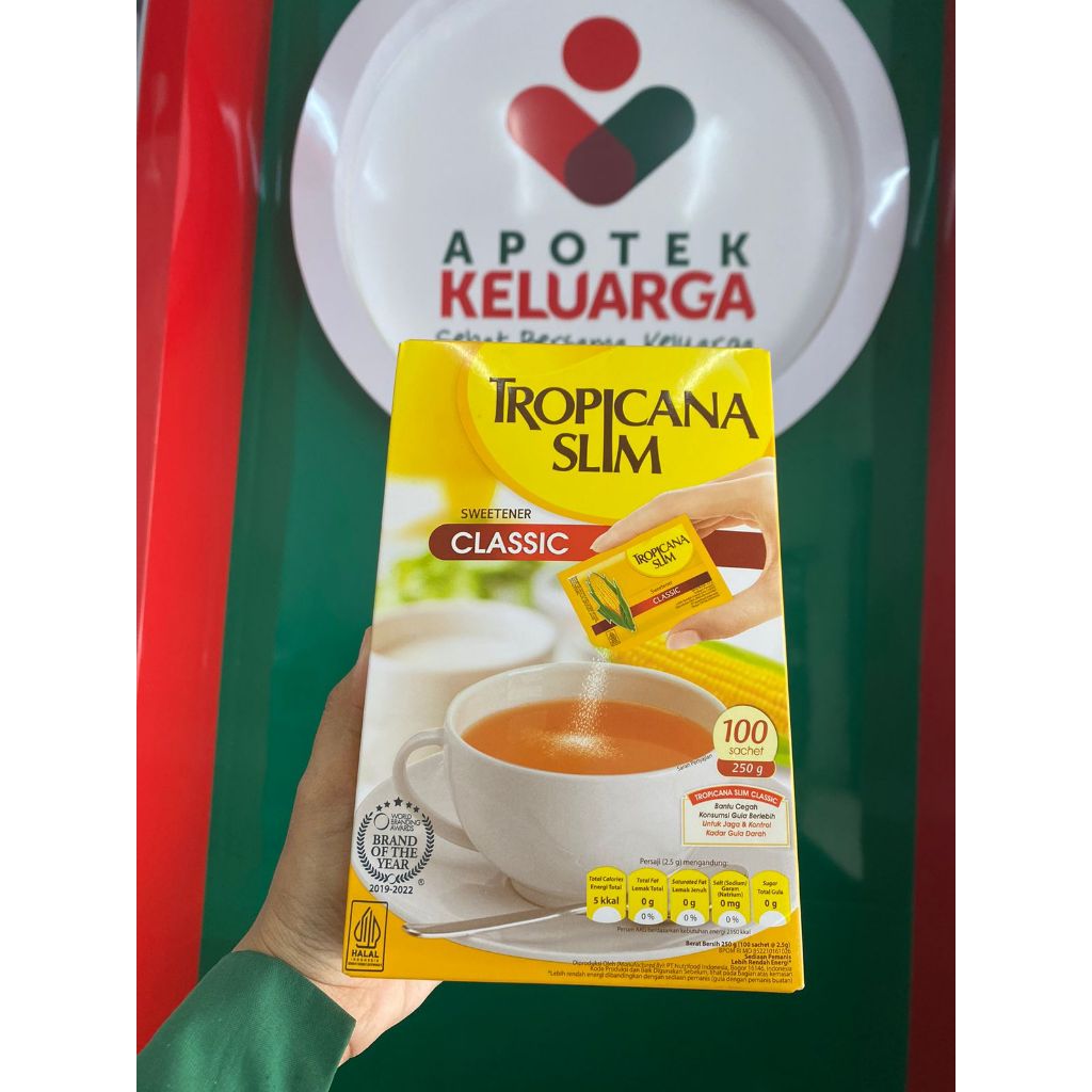 Tambahkan 1-2 sachet Tropicana Slim Sweetener Classic sebagai pengganti gula pasir pada minuman favoritmu. 1 sachet (2.5 gram) Tropicana Slim Sweetener Classic setara dengan kemanisan 2 sendok teh (10 gram) gula pasir.