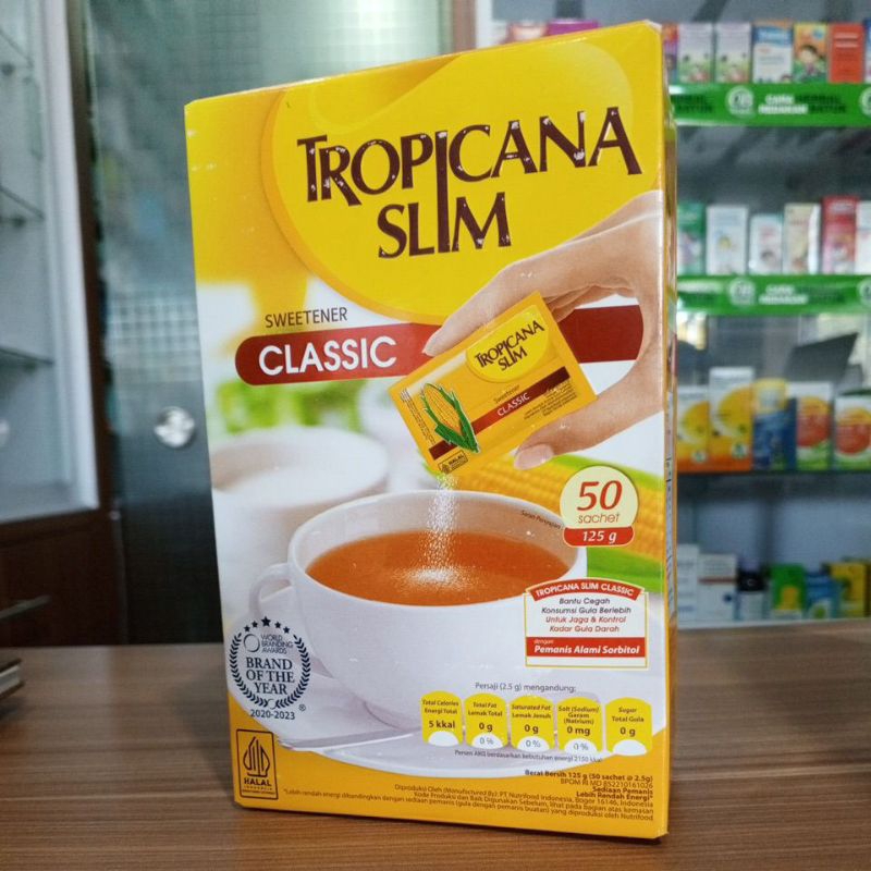 Tambahkan 1-2 sachet Tropicana Slim Sweetener Classic sebagai pengganti gula pasir pada minuman favoritmu. 1 sachet (2.5 gram) Tropicana Slim Sweetener Classic setara dengan kemanisan 2 sendok teh (10 gram) gula pasir.