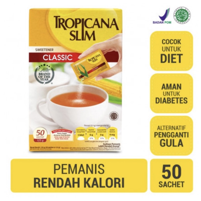 Tropicana Slim Sweetener Classic telah dipercaya selama hampir 50 tahun oleh masyarakat Indonesia dan telah dinikmati di lebih dari 30 negara di dunia. Nikmati rasa manis Tropicana Slim Sweetener Classic dengan berbagai minuman favoritmu tanpa rasa khawatir karena produk ini diformulasikan bebas gula pasir dan rendah kalori sehingga ideal untuk bantu jaga dan kontrol kadar gula darah.