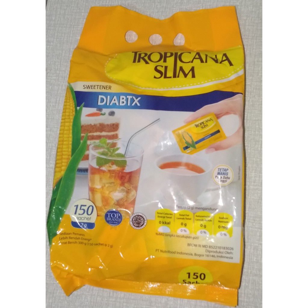 Tropicana Slim Sweetener DIABTX merupakan salah satu dari varian gula Trop. Slim yang telah di dipercaya masyarakat Indonesia sejak 40 tahun lalu. Pemanis bebas kalori (nol kalori) ini sangat cocok dikonsumsi bagi para penyandang diabetes, krn mengadung kromium & juga rendah indeks glikemik yg dapat membantu mengontrol Kadar gula darah didalam tubuh. Dengan rasa manis yang lezat, namun tetap sehat, Anda tetap dapat menikmati minuman manis tanpa kalori tanpa rasa khawatir terhadap program diet rendah kalori dan juga peningkatan kadar gula darah didalam tubuh