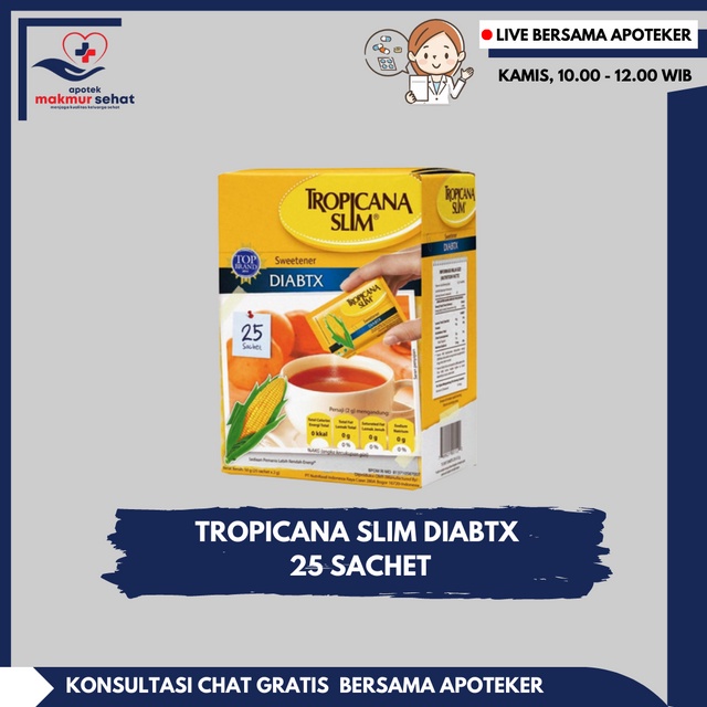 Tambahkan 1-2 sachet Tropicana Slim Sweetener DIABTX sebagai pengganti gula pasir, dalam minuman Anda. 1 sachet (2 gram) Tropicana Slim Diabtx setara dengan 2 sendok teh (10 gram) gula pasir.